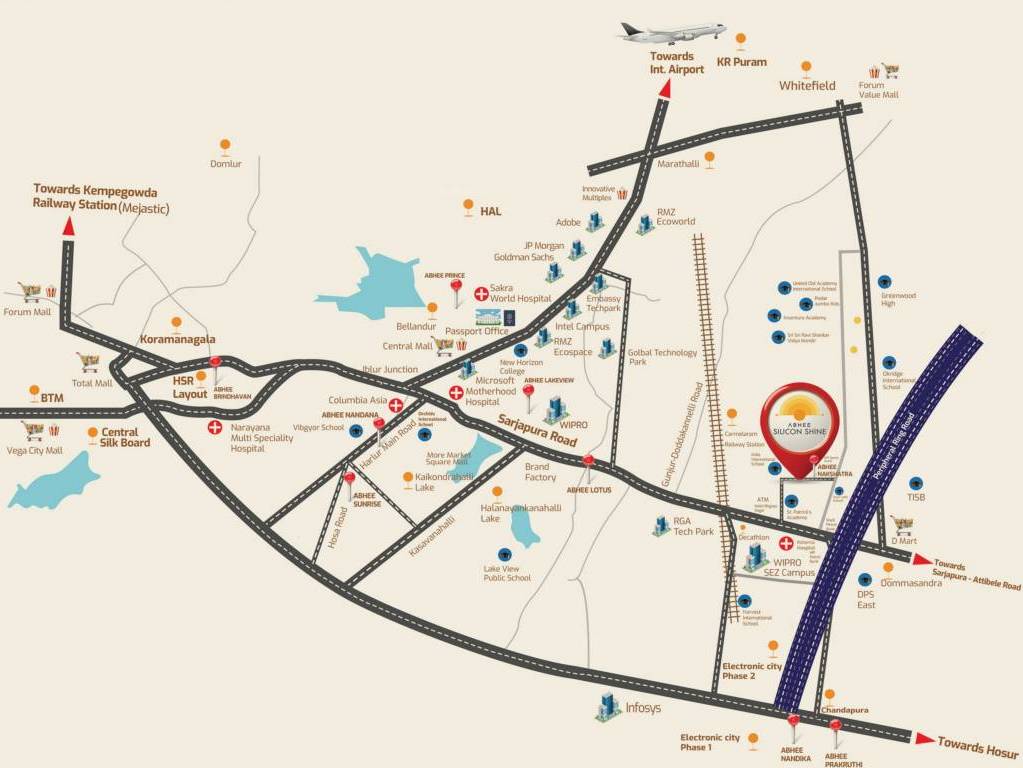 • Close to Bengaluru’s best malls, hotels and hospitals