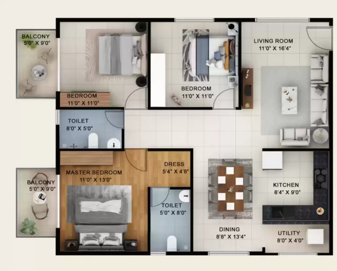 3 BHK 1475, 1490, 1505,1595, 1635, 1680 & 1695 sqft 83 Lakhs Onwards* Download